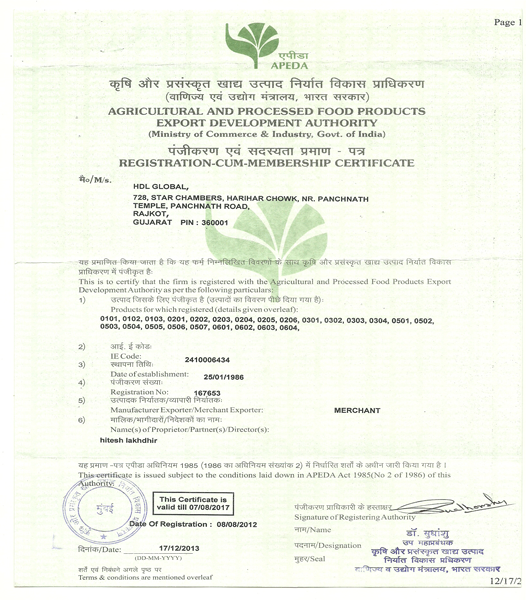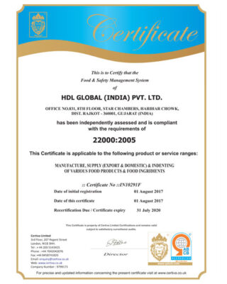 - At HDL Foods, our certifications reflect our commitment to uncompromised quality, authenticity, and global excellence. Each recognition is proof of our dedication to maintaining the highest standards in sourcing, processing, and delivering premium dry fruits and food products.